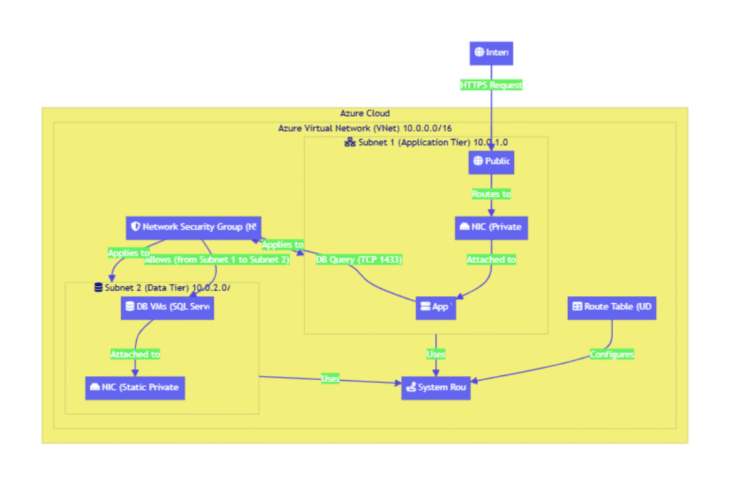 This Azure VNet architecture, while simple, demonstrates the fundamental principles of building a secure and scalable cloud infrastructure. By leveraging network segmentation with subnets and enforcing strict traffic controls with Network Security Groups, it creates a robust foundation that protects sensitive data while enabling application growth. It proves that a well-designed network is not merely a plumbing exercise; it is the essential blueprint for a secure, resilient, and enterprise-ready cloud solution.